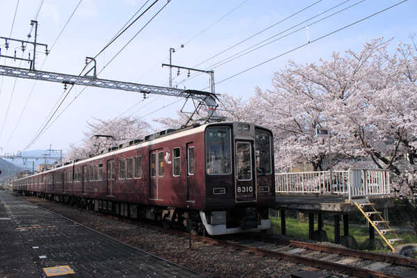 満開の桜と阪急8300系